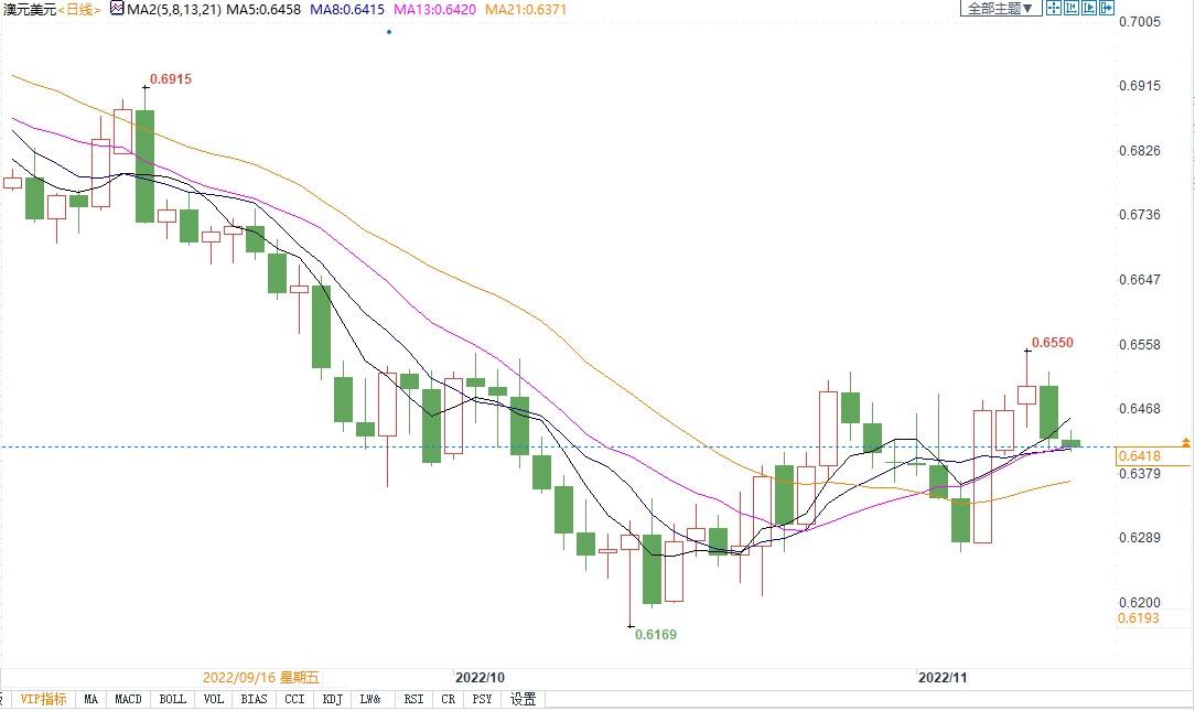 北京时间11月10日14:38,澳元兑美元报0.6419/20