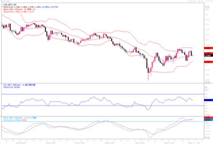 英镑兑美元周三在连涨三日后走软,当日英镑兑美元跌1.60%报1.1355。市场正在期待英国财政大臣亨特计划于11月17日发表的财政声明,有迹象表明政府将对公共开支进行压缩,并可能提高税收。消息面似乎对英镑不利。日图测试MA100,需要有效突破该线才能打开进一步上行空间。4小时图随机指标熊背离。小时图测试1.1560上方水平未能企稳回落,继续关注该档阻力。下方则关注1.1330的支撑是否牢固,若跌破,则英镑兑美元的回落将会继续加深。
